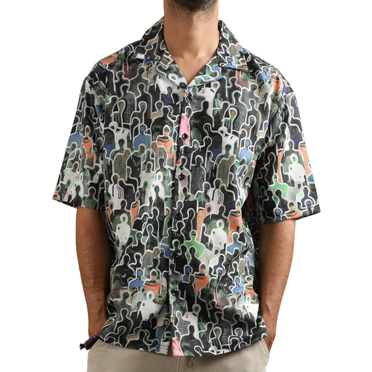 CHARCOAL SILHOUETTES CUBAN COLLAR SHIRT