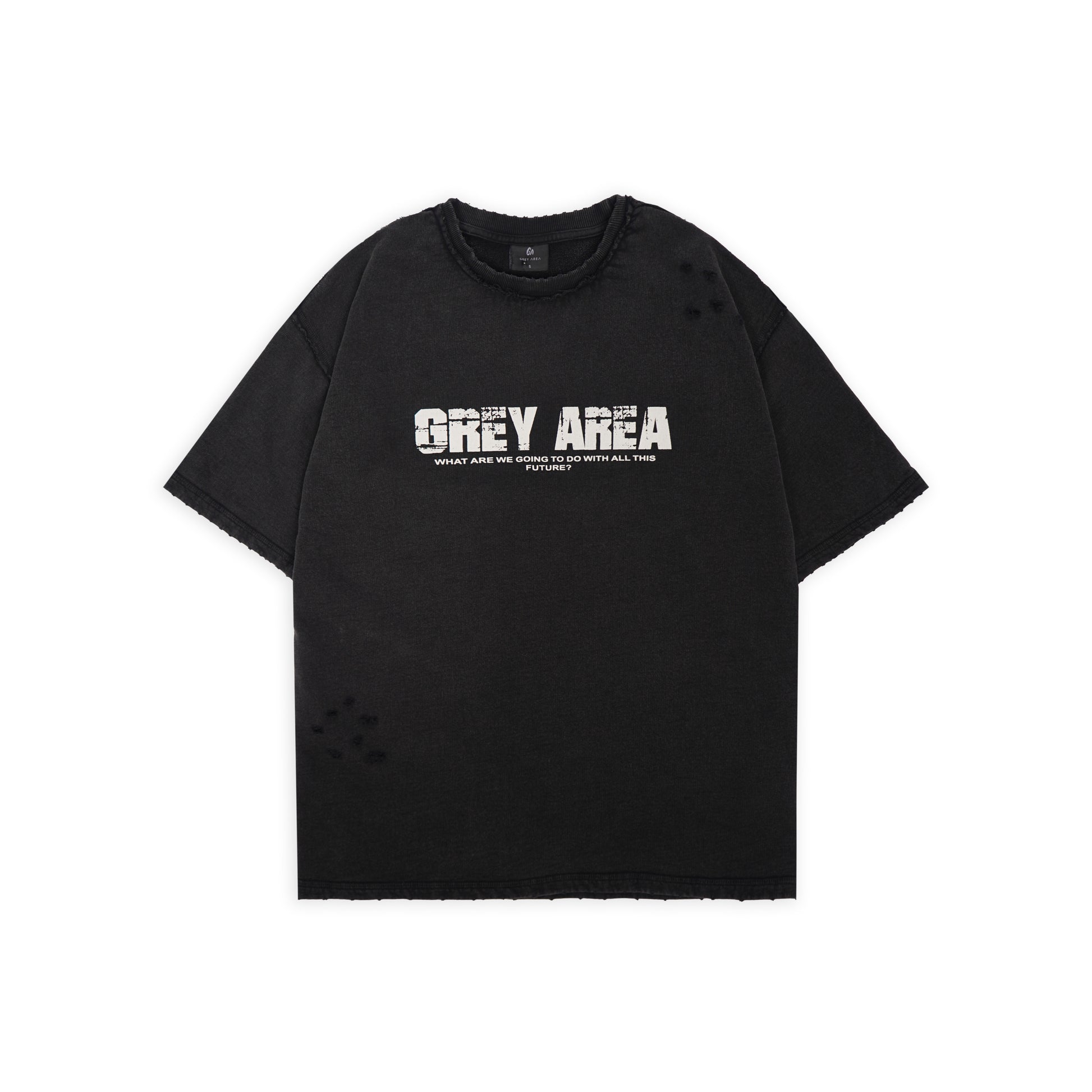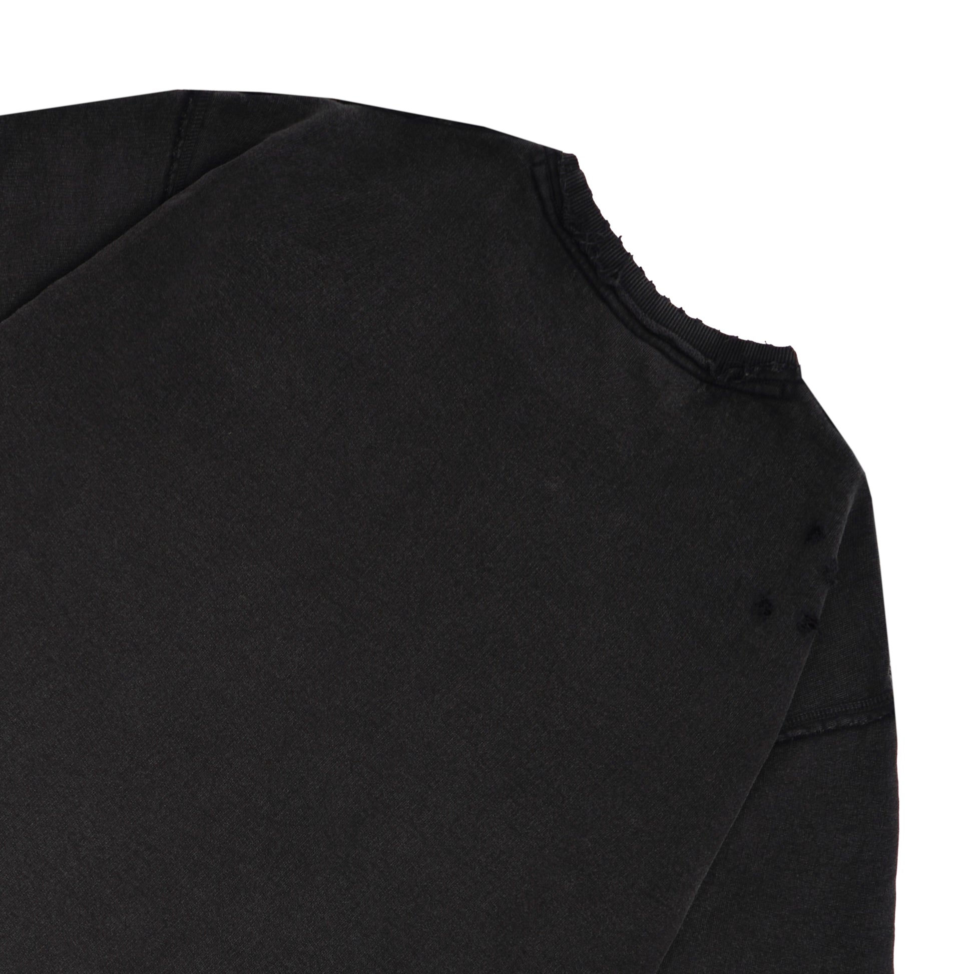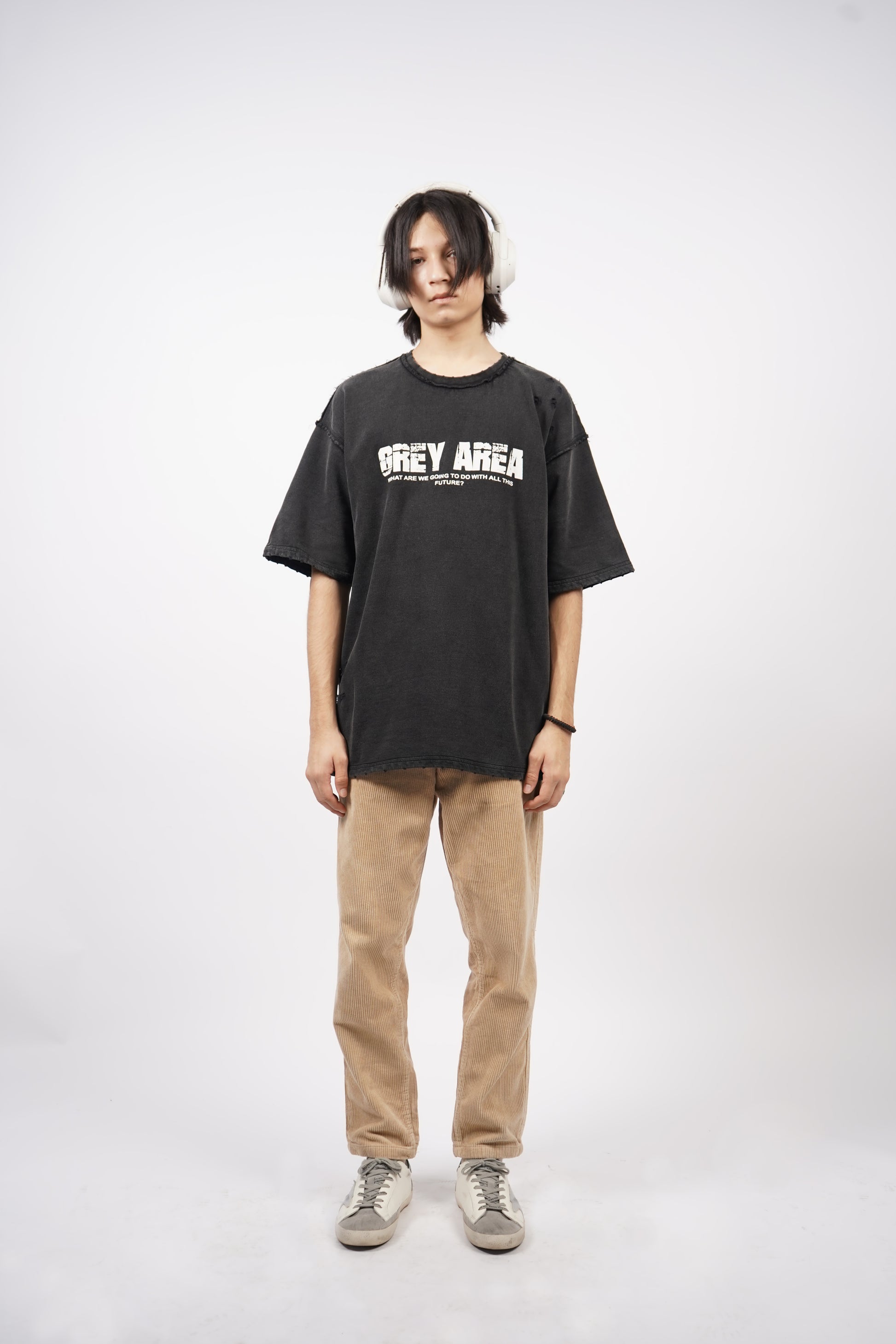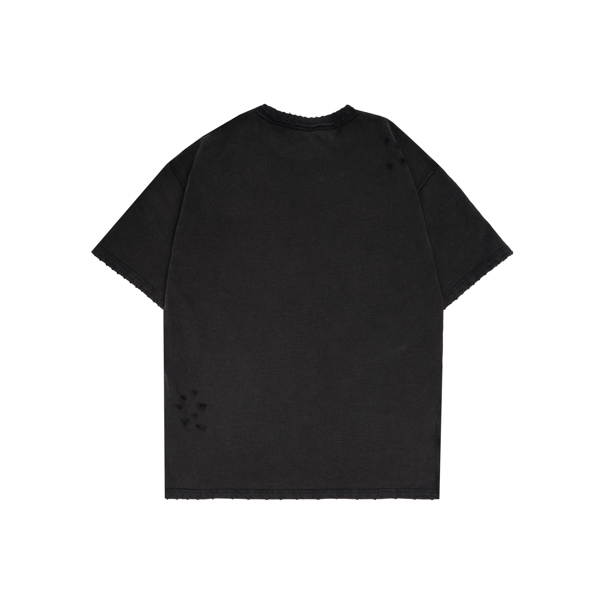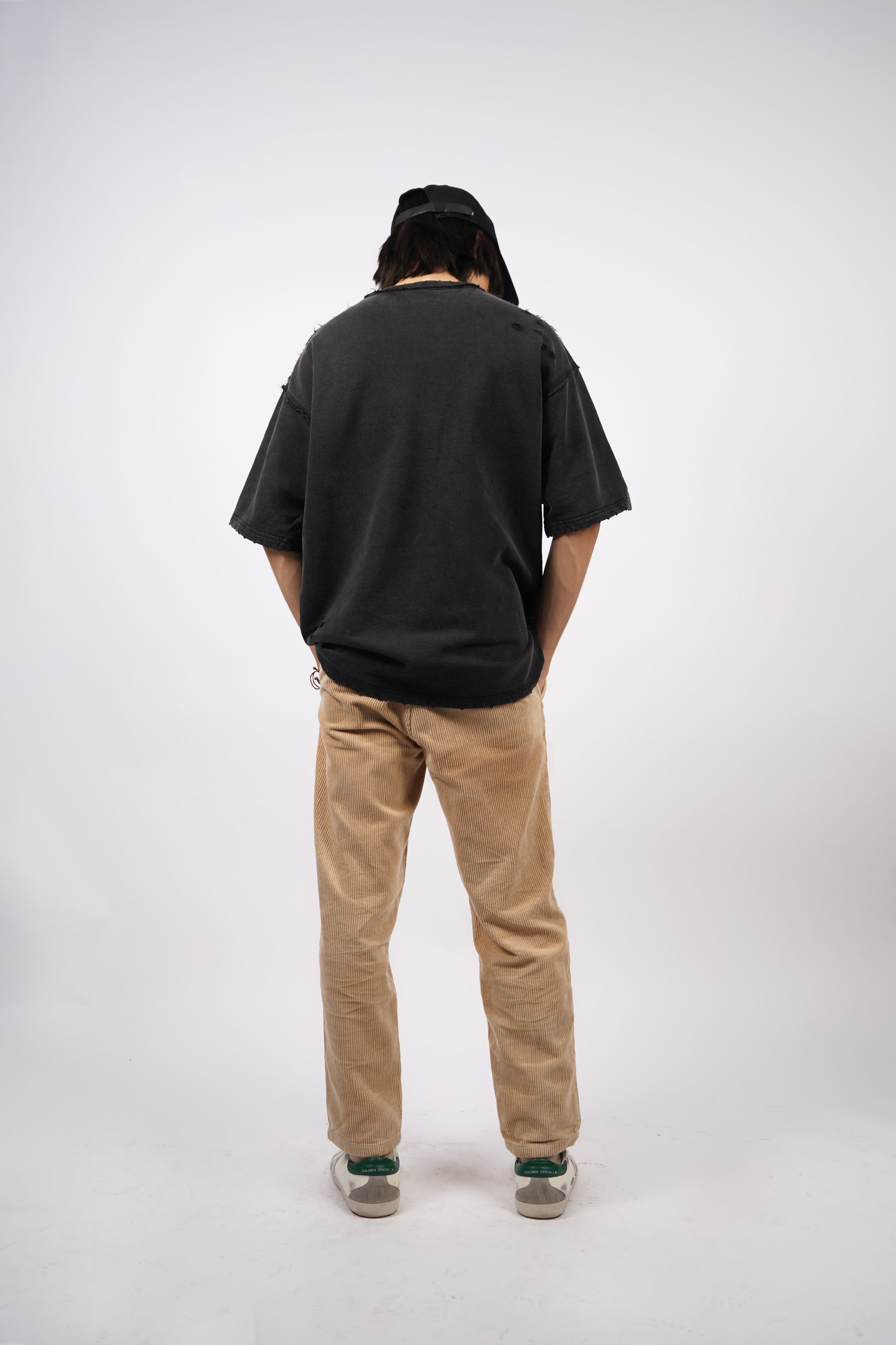 This T-shirt has a raw vintage vibe with ripped texture on front and back. The neck and sleeves have a unique reverse stitch giving character to the t-shirt.